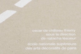 Mémoire de 4ème année à l’École Nationale Supérieure des Arts Décoratifs de Paris, sous la direction de Natacha Lesueur, ayant obtenu les félicitations du jury. Il s’agit d’une recherche sur les voies alternatives, parallèles à la voie principale, leur importance et leur rôle quant à la capture des relations au cinéma. Mis en page, avec la grande aide de Nicolas de Château-Thierry, puis relié et sérigraphié à l’école.